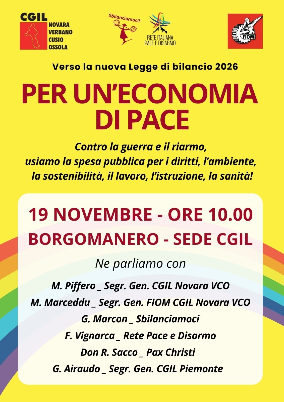 CGIL NOVARA E VCO IN PIAZZA PER UN MONDO MIGLIORE Weekend di diritti e solidarietà per la CGIL Novara e VCO. Nella giornata di sabato 6 settembre affolleremo le piazze della nostra provincia per supportare chi vuole un mondo di pace, solidarietà e rispettoso dei diritti civili.Per questo motivo saremo presenti