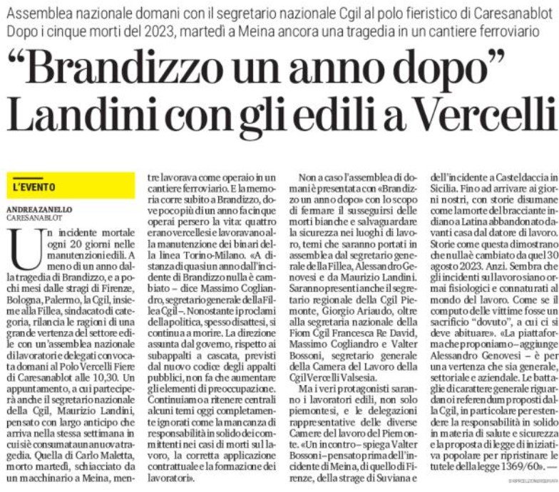 BRANDIZZO: UN ANNO DOPO SI CONTINUA A MORIRE