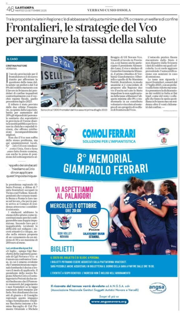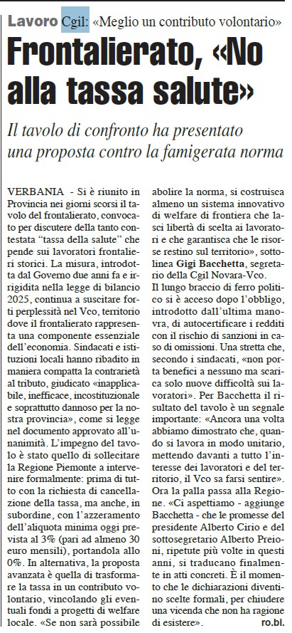 FRONTALIERATO: TAVOLO VCO CONTRO TASSA SALUTE