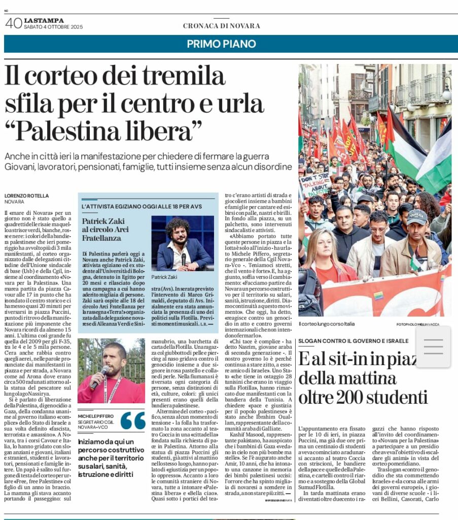 SCIOPERO GENERALE: OLTRE 5MILA IN PIAZZA A NOVARA E NEL VCO CONTRO IL GENOCIDIO E PER LA GLOBAL SUMUD FLOTILLA